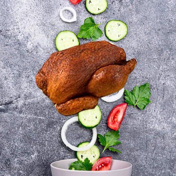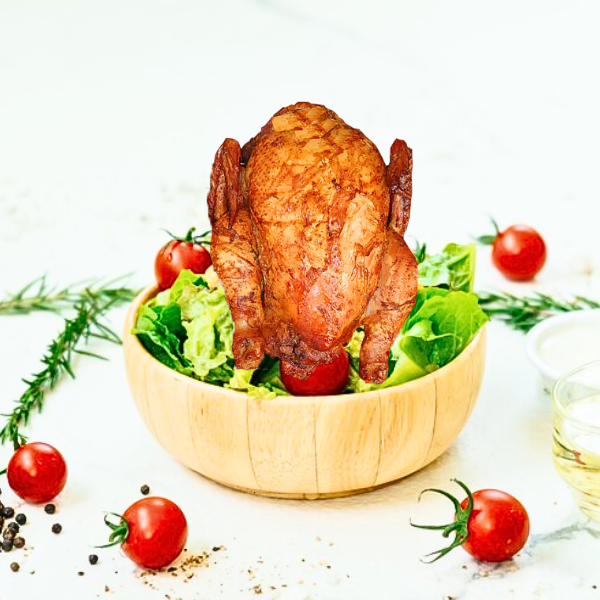 Mariné délicatement dans une pâte d’arachide maison avant le fumage.